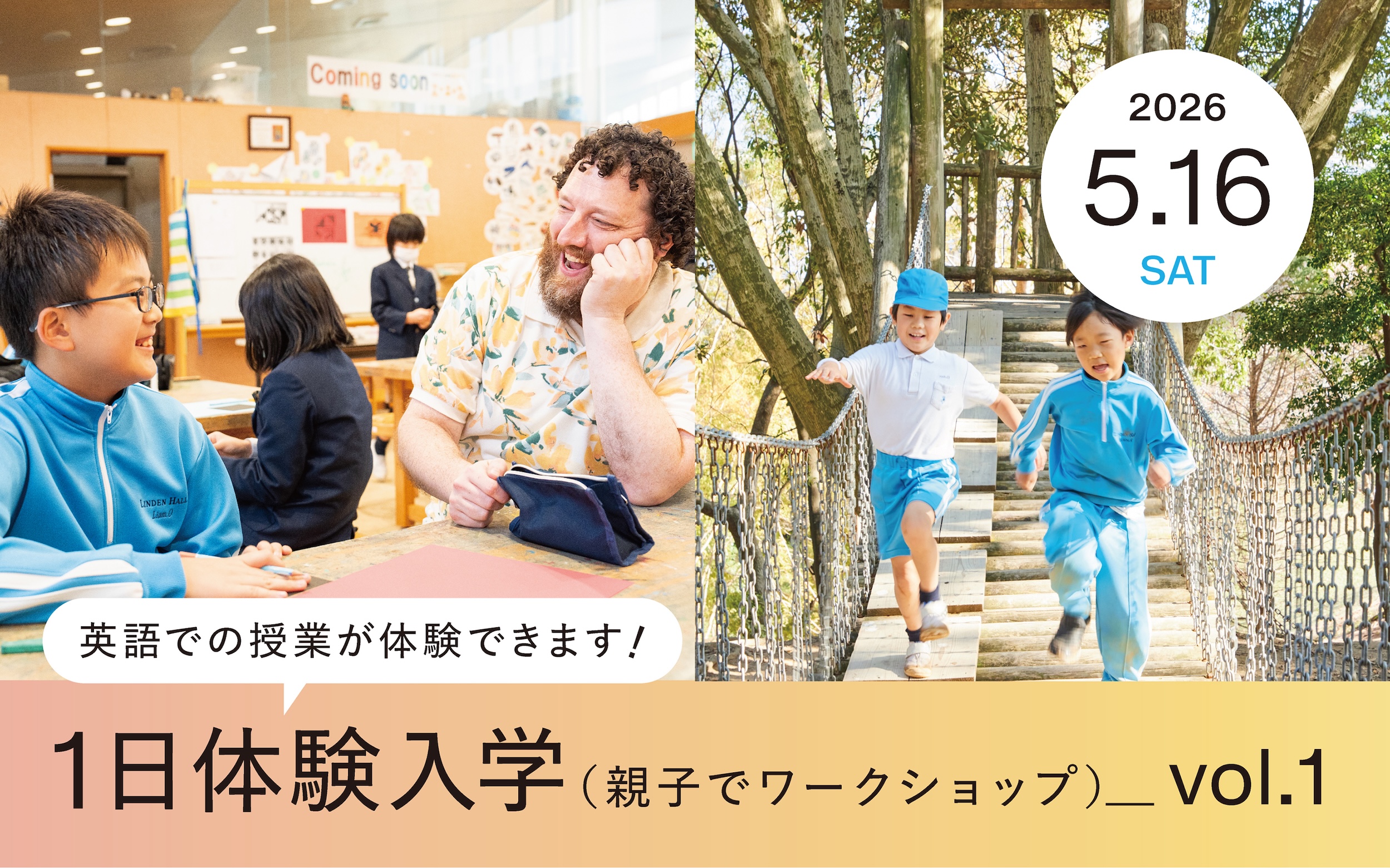 親子で一緒にリンデンホールスクールの学校生活を一日体験していただけるプログラムです。