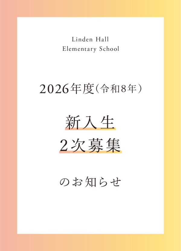 本校では、2026年度新入生の合格発表後に、多くの方々から入学希望やお問い合わせをいただきました。 これを受け、このたび2026年度新入生の2次募集を実施することとなりました。 募集人数は若干名となります。 詳細につきましては下記のURLよりご確認ください。 https://lindenhall.ed.jp/elementary/admission/