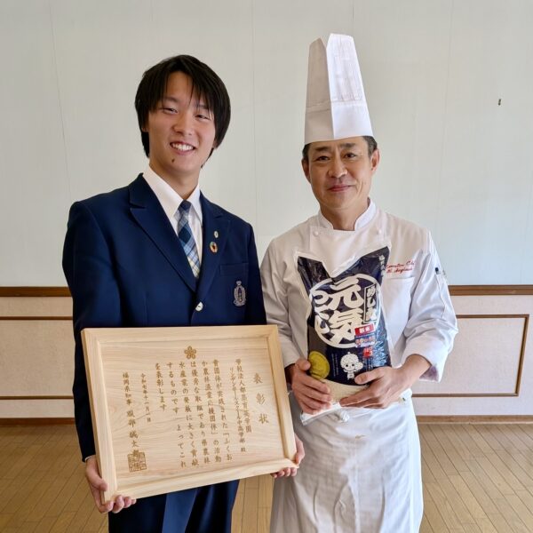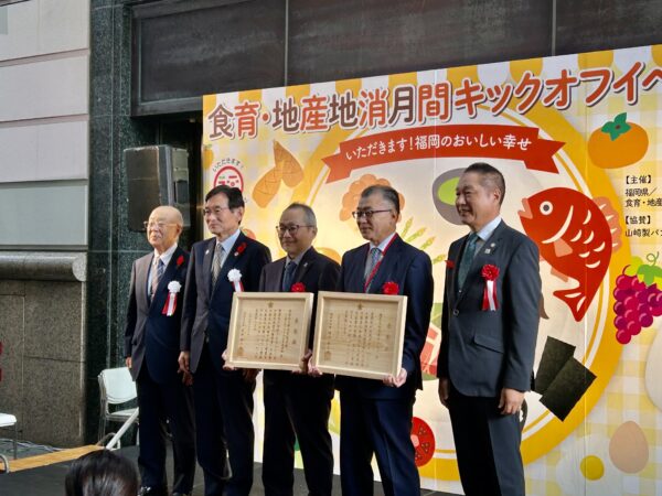 県産農林水産物の消費拡大に繋がる活動と高く評価頂いた本校のオーガニック給食の取り組みが、11月1日(土)、エルガーラ・パサージュ広場で行われた「食育・地産地消月間 キックオフイベント」で、「ふくおか農林漁業応援団体」として表彰を受けました。
