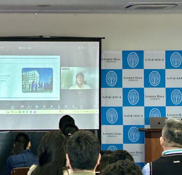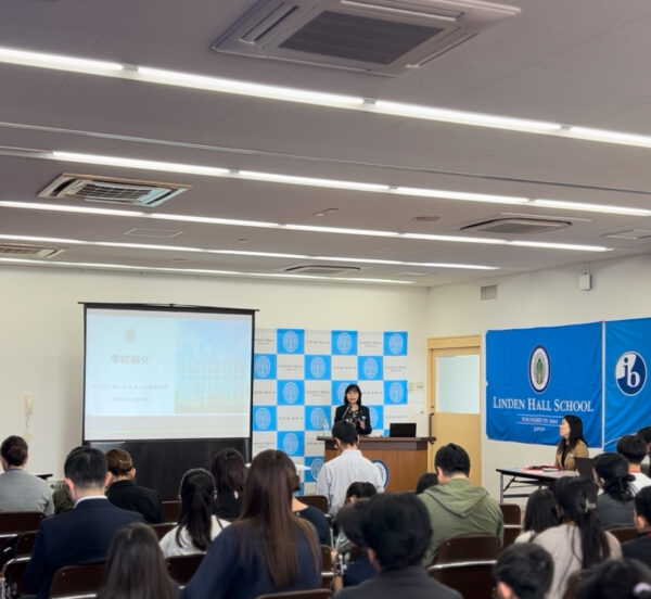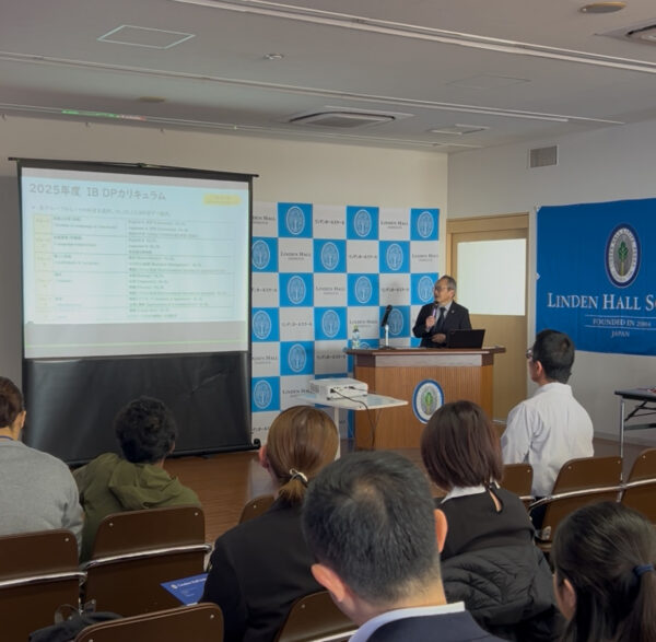 参与の景山より教育理念や国際バカロレアプログラムの詳細、進路実績、入試要項等について説明を行いました。
