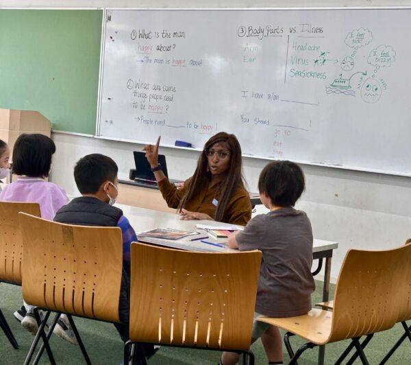 その後学年で2つのグループに分かれ、環境と英語の体験授業が行われ、
