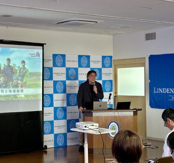 また今回は、地元・筑紫野市で有機農園を運営され日頃よりオーガニック給食で使用する野菜やお米を提供頂いているオーガニックパパ(株)・八尋代表にもお越し頂き、本校の給食の特徴や調理についてお話頂きました。