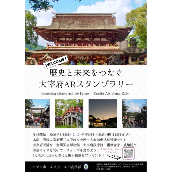「観光客が太宰府天満宮に集中してその他の歴史遺産への回遊ルートが広がっていない」という地域課題に向き合い、自分たちにできる方法で太宰府の魅力を発信したいと考え、その学びの集大成となる歴史遺産ガイド(英語・日本語)とデジタルスタンプラリーの開催がいよいよ迫ってきました。