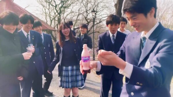 最初に行ったのは、炭酸飲料にメンソスを入れることで泡が勢いよく噴き出す「メンソス・コーラ」の実験です。