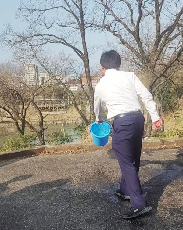 これは遠心力の原理によるもので、回転することで水がバケツの底や側面に押し付けられ、重力に逆らうように留まる現象が起こります。生徒たちは実際にバケツを回しながら、力の働き方を体験的に学びました。